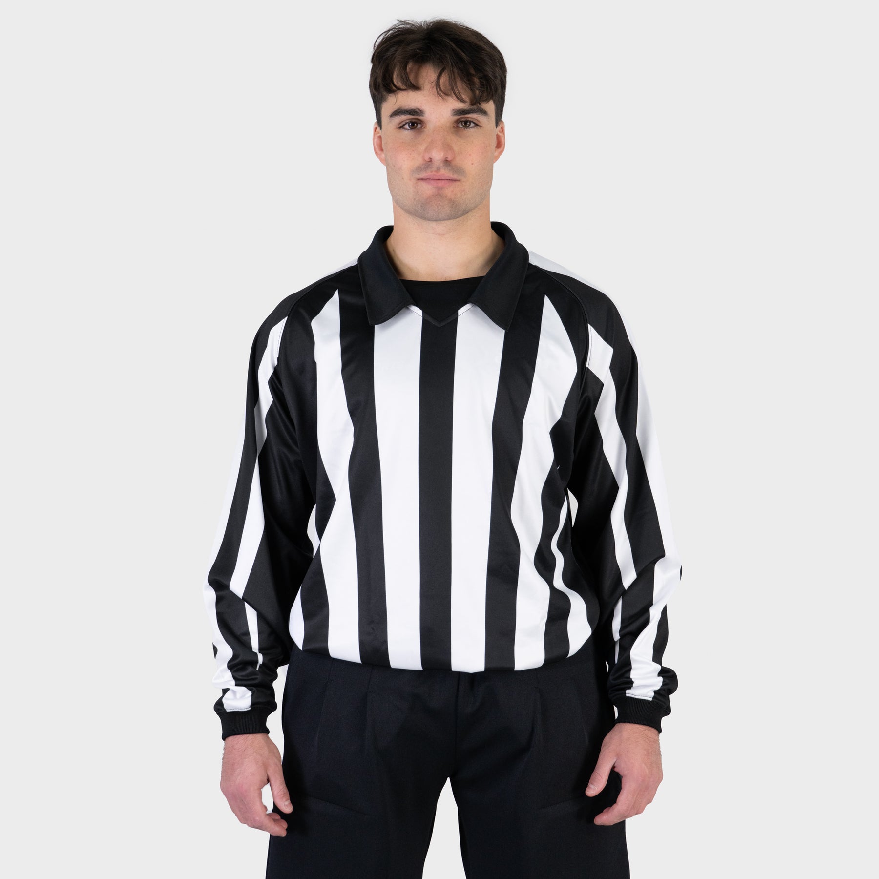 Designed for elite officials, the Zebrasclub ZLE hockey referee jersey is made of thick yet breathable polyester fabric with wide black and optic white stripes. The no zipper collar offers a pro style and will sit perfectly on both sides. The ribbed cuffs were designed smaller for greater comfort and a professional look.